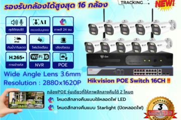ชุดกล้องสีกลางวัน/กลางคืน Sony Extra Starlight IP Camera 2 ล้านพิกเซล 16 ตัว-POE-AI-F1.0