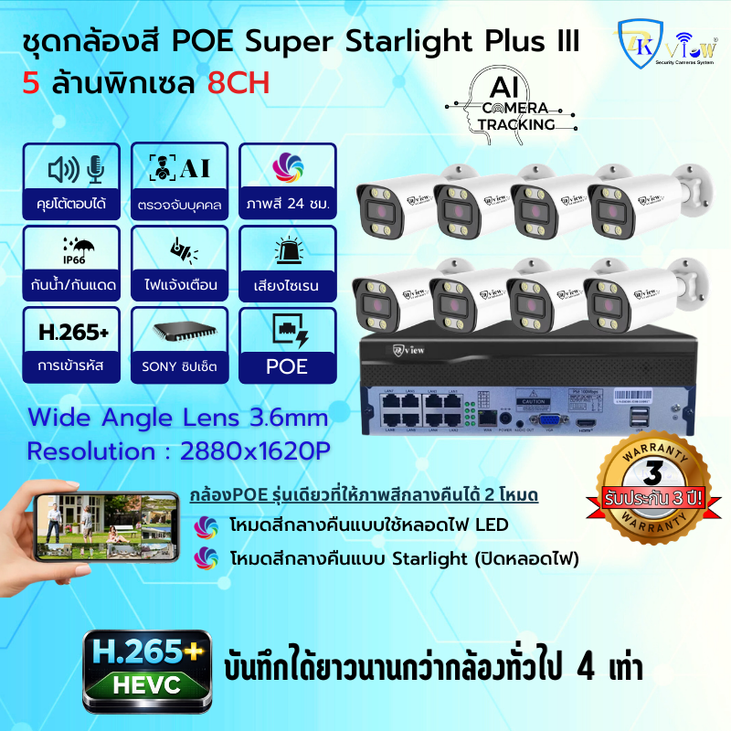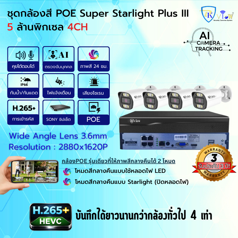 ชุดกล้องสีกลางวันกลางคืน Super Starlight Plus II 5MP 4CH/8CH/16CH GEN2(บันทึกเสียงและคุยโต้ตอบได้)-POE-AI